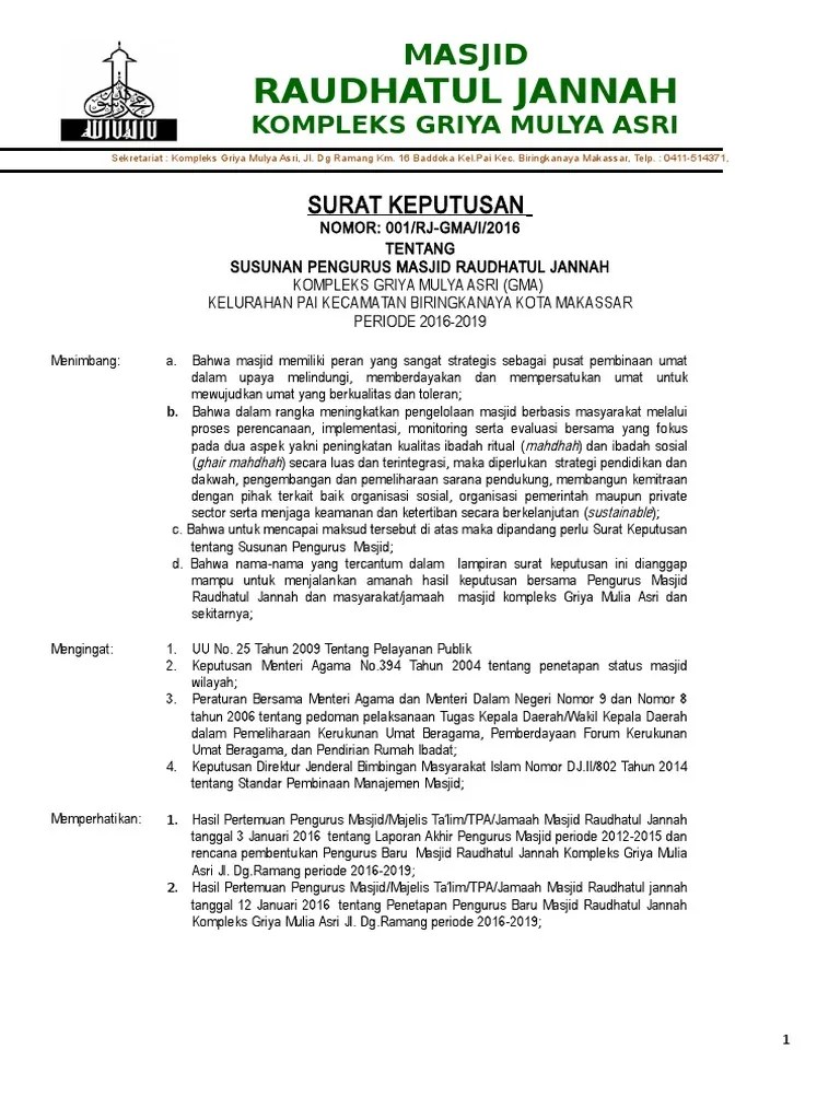 Sehubungan dengan terbentuknya organisasi ikatan remaja masjid nurul yaqien tassilli (ikranul), maka dengan ini kami memohon kepada pengurus dpdes bkprmi desa pattallassang kecamatan pattallassang kabupaten gowa, untuk segera menerbitkan surat ketetapan (sk) demi berjalannya roda organisasi di ikatan remaja masjid nurul yaqien tassilli (ikranul), yang bertempat di desa pattallassang kecamatan pattallassang kabupaten gowa. Contoh sk pengurus masjid guru ilmu sosial. Maybe you would like to learn more about one of these? Contoh surat kuasa resmi pengambilan barang Contoh surat permohonan reshuffle pengurus cuitan dokter. 087 740 009 525 nomor : Jalan poros pattallassang samata kab.gowa, hp: Untuk selengkapnya mengenai surat permohonan sk bupati/walikota bisa dilihat disini. Contoh sk susunan pengurus majelis taklim dunia sosial. Sk pengurus masjid 2020 guru galeri from i0.wp.com ada beberapa istilah sejenis atau nama lain dari surat keputusan (sk) pengurus masjid ini, diantaranya contoh surat permohonan sk susunan pengurus. (jangan ambil pusing, sobat tinggal download dan mengedit. Surat pernyataan organisasi 2017 docx 1512 downloads sambutan. Pemberitahuan kegiatan kepada yang terhormat, ketua umum hmi cabang purwakarta u.p.